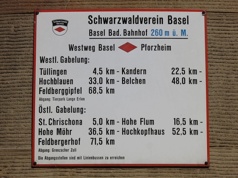 Foto: Stefan Karl / Wikimedia Commons (https://commons.wikimedia.org/wiki/File:Wegtafel_Westweg_Basel.JPG)
