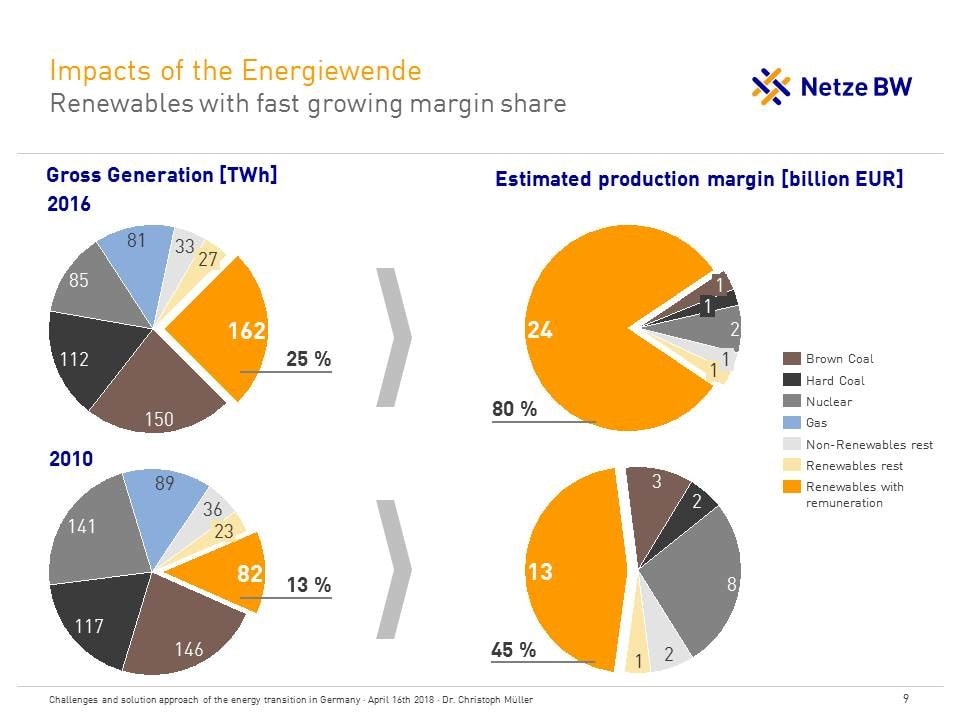 Verfangen, insbesondere dann auch bei den Diskussionen in der Kaffeepause, hat ein Chart, auf dem die Erneuerbaren Energien in der Erzeugung schon einen Anteil von über 75% hatten – an der Rohmarge.