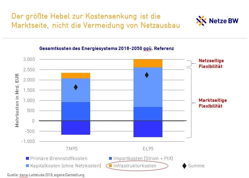 Die aktuelle Engpassmanagement-Situation im Übertragungsnetz gibt leise Hinweise, dass das in der Tat so sein könnte. Für 2019 erwarten wir Kosten zur Bewirtschaftung der Netzengpässe in Höhe von 2,2 Mrd. €. Seit 2013 haben wir hier dann rund 8 Mrd. € aufgewandt – Zahlungen an die Marktseite, weil es auf der Netzseite nur unzureichende Kapazitäten gibt. dena sieht die Kosten für einen Kilometer Höchstspannungsfreileitung bei 1,5 Mio. €, d. h. mit 8 Mrd. € kann man gut 5300 Kilometer Höchstspannungsfreileitung bezahlen (bezahlen, nicht finanzieren!). Es könnte einem der Gedanke kommen, dass Netzausbau gegenüber dem Einkauf von Flexibilität auf der Marktseite vielleicht doch der günstigere Ansatz ist.